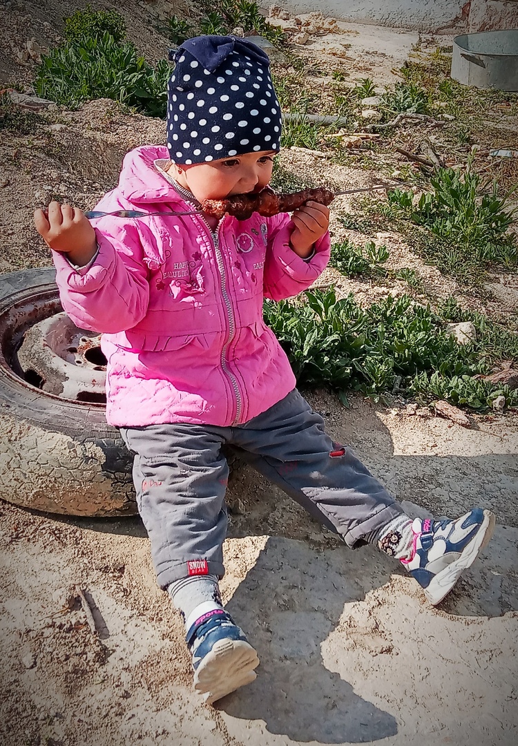 Сейчас уже припекать начало, вот и я выползаю, глянуть, как молодята огород обустроили: грядочками в шиферных стеночках.